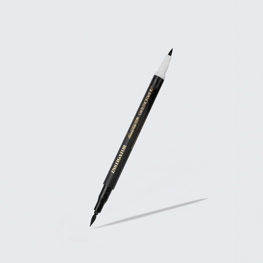 Line your eyes flawlessly with Instigator duo eyeliner and corrector pen, the ideal tool to create any look, from a thin line to a bold cat eye. Designed for beginners and experts alike, this liquid eyeliner includes a corrector pen to clean up any edges and achieve the perfect line every time. Its transfer-proof formula lasts all day without smudging so you can go about your day worry-free.